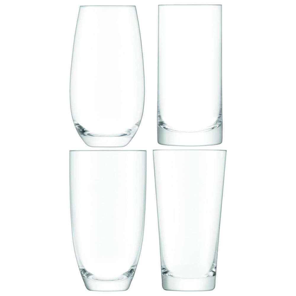 This set of four assorted highballs joins our eclectic Lulu collection. Mouth blown by skilled artisans, each modern glass is ideal for serving a variety of long drinks.