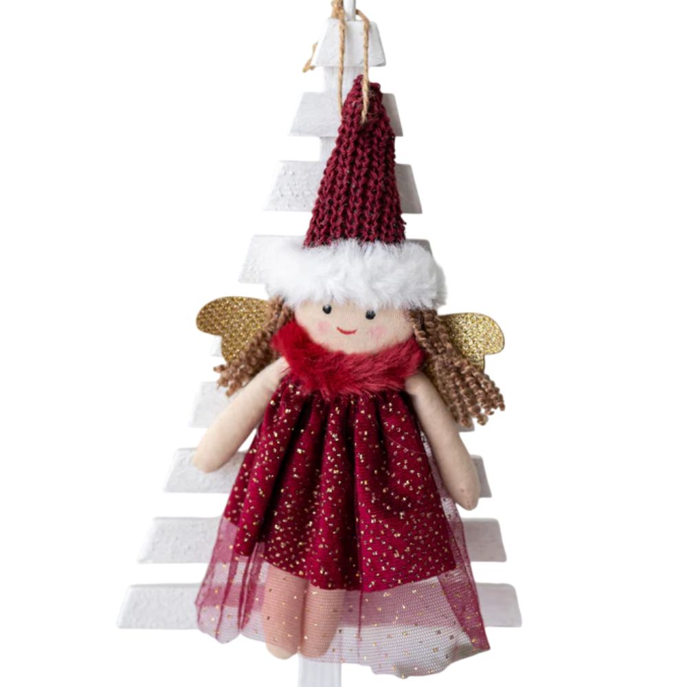 This Angel hangs beautifully and pairs well with the Pink Hanging Fabric Glitter Angel. A lovely Christmas decoration and also sweet in kiddies rooms.